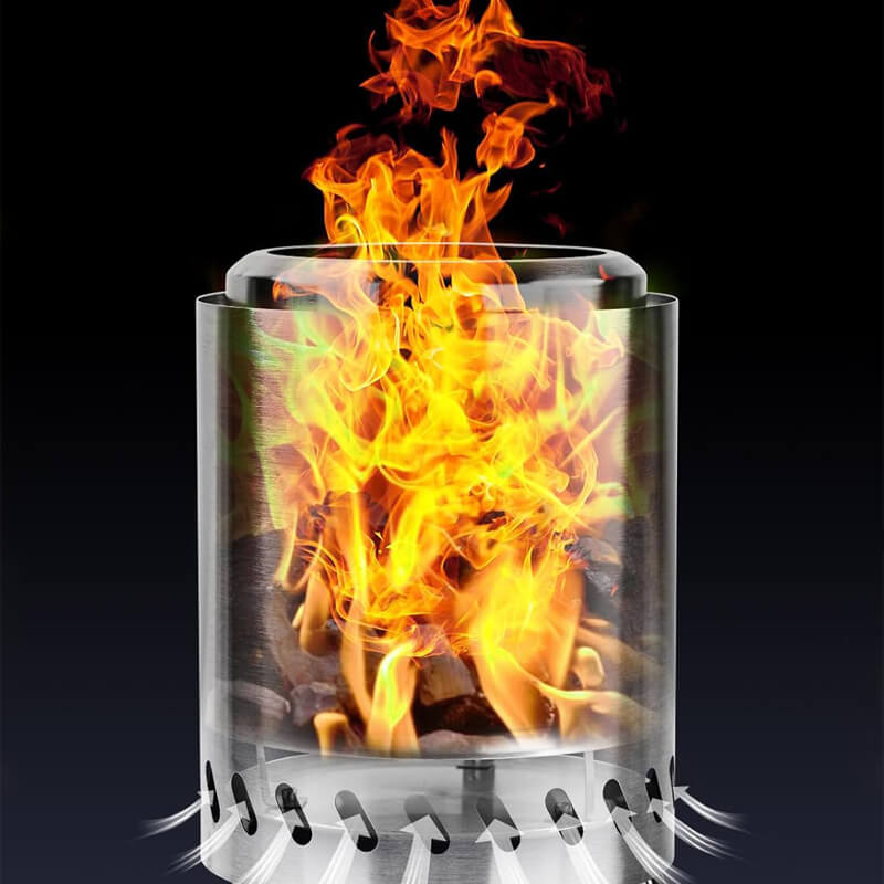 The double-layer design of iToolMax fire pit features upper and lower 360° air vents, and with second combustion, increasing the air intake by 200% during the combustion process. This design makes the fuel easier to ignite and ensures thorough combustion. Not only is the burning process odorless and smokeless, but also more environmentally friendly and cleaner.