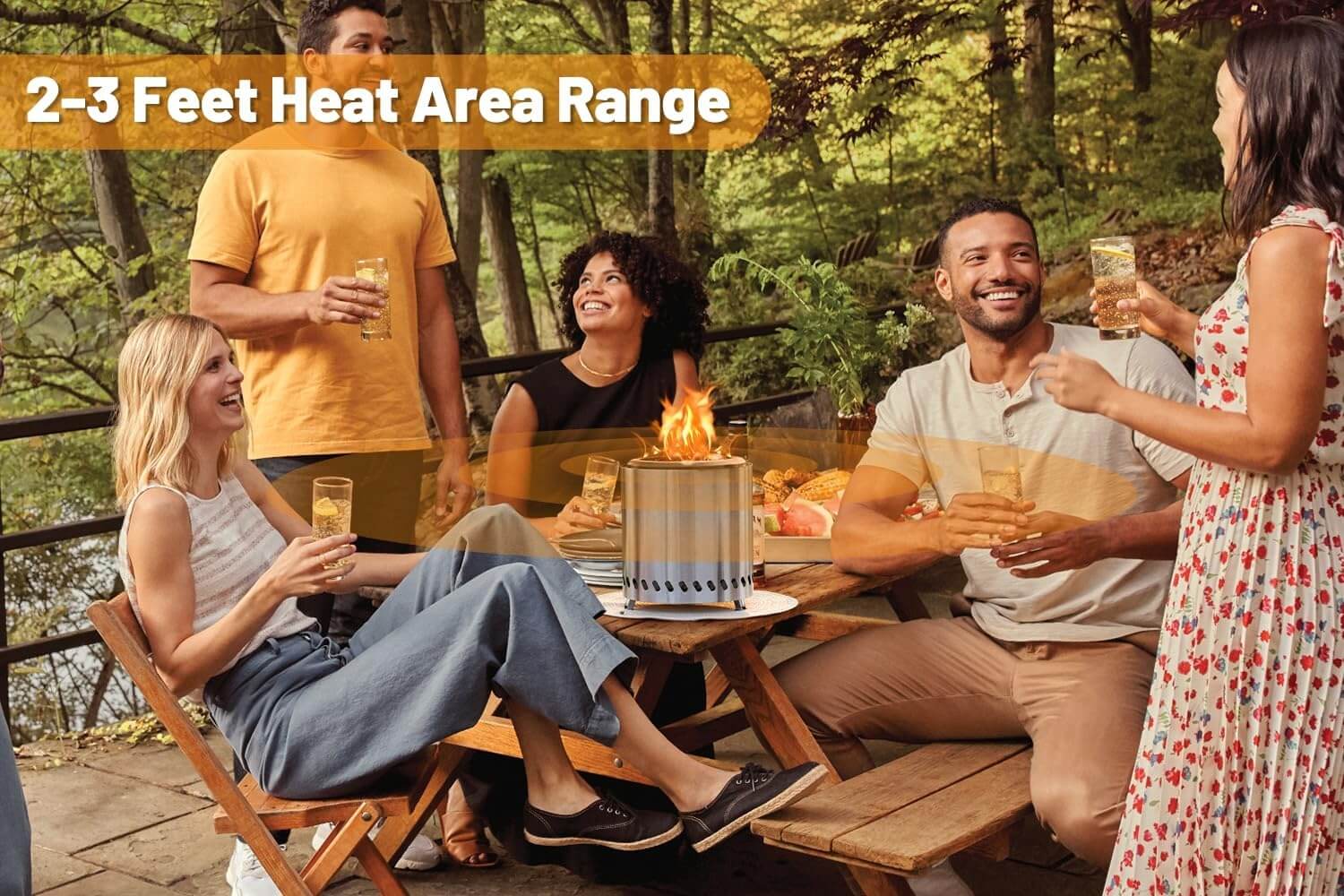 Cozy ambiance to any space with iToolMax Smokeless Tabletop Fire Pit. No longer worry about smoke irritating your eyes and cause discomfort. Instead, you can enjoy the warmth of an open fire, and no risk from flare-ups and fuel spills commonly found in alcohol fire pits. Covers 3ft heat area range, perfect for warming up, burning or roasting marshmallows, or warming up. It is a fine addition to terraces, balconies, backyards or outdoor camping.