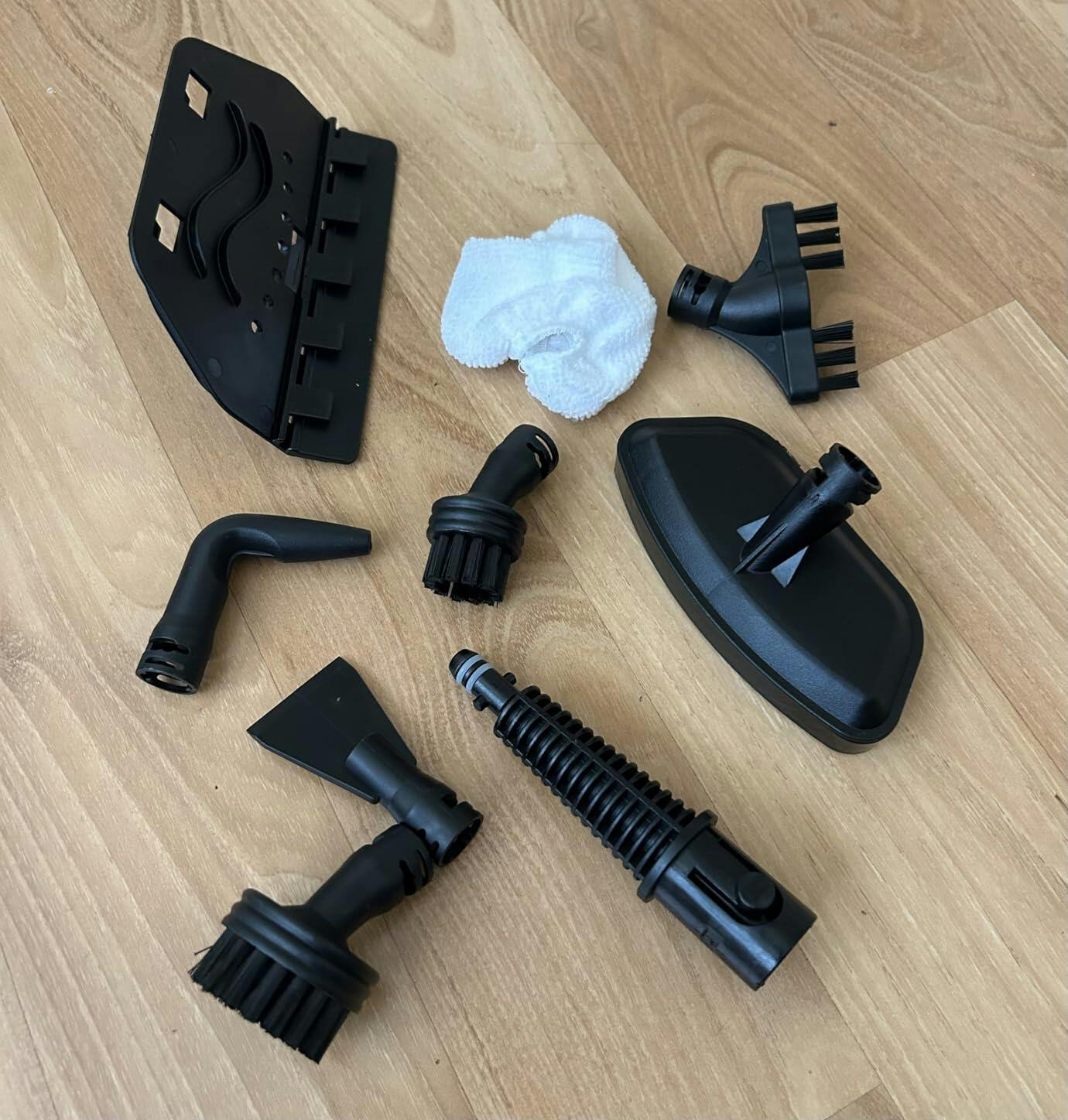 Includes round brush, angled nozzle, window brush, and ironing brush for versatile cleaning. Perfect for floors, windows, sinks, and more, this high-pressure steam cleaner tackles every corner of your home with ease.