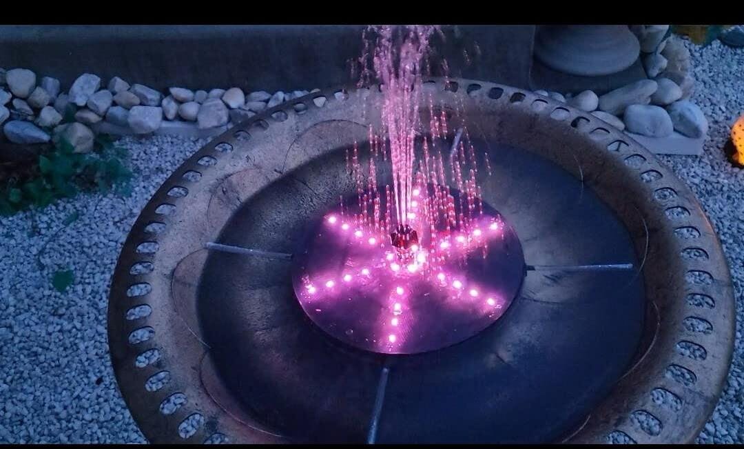 itoolmax 4W Solar Fountain, just put it on the water, and you will instantly have a up to 23.6in(60cm) fountain landscape in 3 seconds. And can change different color lights at night to form a stunning water & light show. It will attract more birds and butterflies in your garden, ideal for garden bird baths, aquariums, small ponds and more.