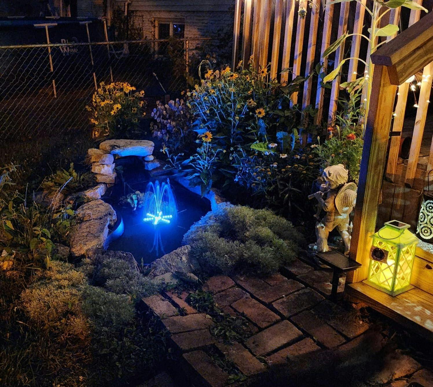 With 60 LEDs, more than any solar fountain on the market. 7 colors cycling and 4 dynamic light modes, this upgraded light cycle creates a stunning night display. A built-in 4000mAh battery powers keep the light effect for 4–6 hours, keeping your garden glowing at night.