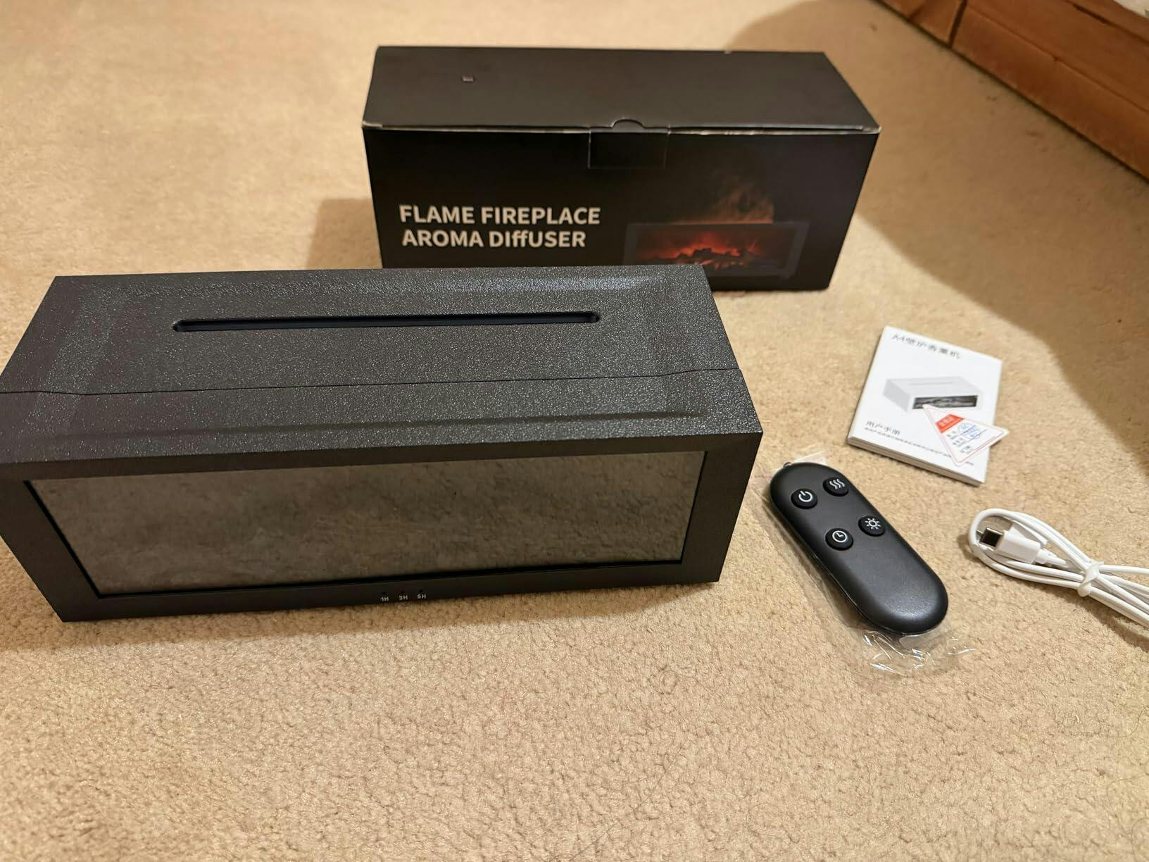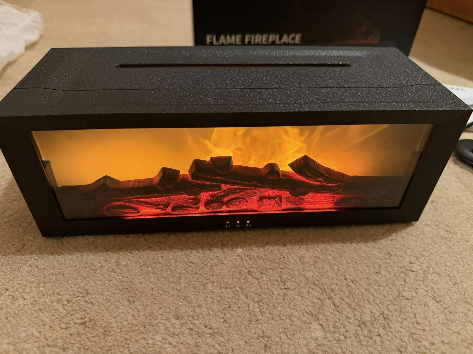 iToolMax 3D Fireplace Diffuser fills your room with a warm, fireplace-like glow using flickering flames and adjustable multicolored lighting.