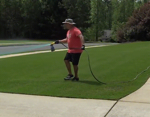 2️⃣ Spray – Attach nozzle, mix seeds and lawn liquid to sit 30 mins, then spray with water evenly.