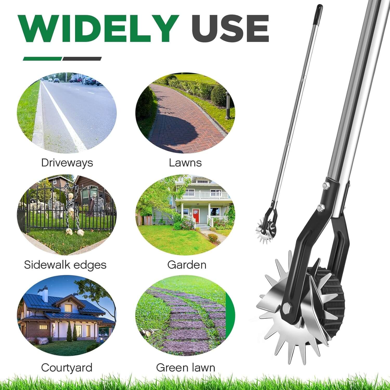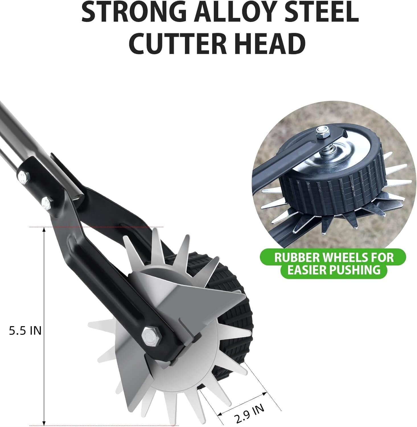 Equipped with Sharp Double-Sided Blades and 2.9Inch Widened High-Quality Rubber Rollers, this edger can cut grass and weeds quickly and smoothly, saving most of your time and energy, and providing precise, clean edges for your lawn.