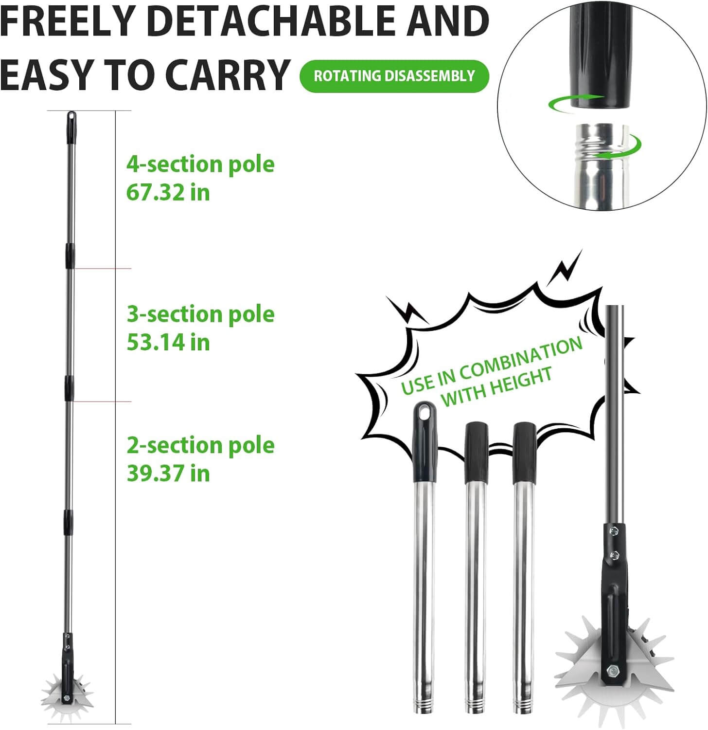 No need to bend over and work anymore, Say goodbye to back pain. This edger can be adjusted to three heights of 39.37 inches, 53.14 inches, and 67.32 inches. You can adjust it to the appropriate height according to your height and different working scene needs, perfectly matching your tool usage habits.