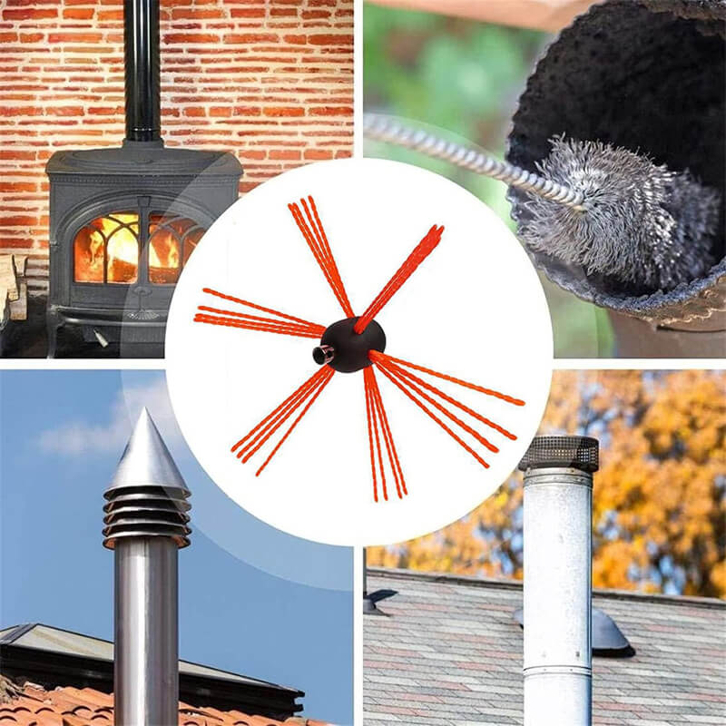 Las cerdas del kit de deshollinador están hechas de cuerda de nailon resistente y duradera, con una forma rectangular puntiaguda especial que limpia eficazmente sin rayar la superficie interior del conducto. El cabezal flexible del cepillo se puede girar fácilmente a alta velocidad con un taladro eléctrico.