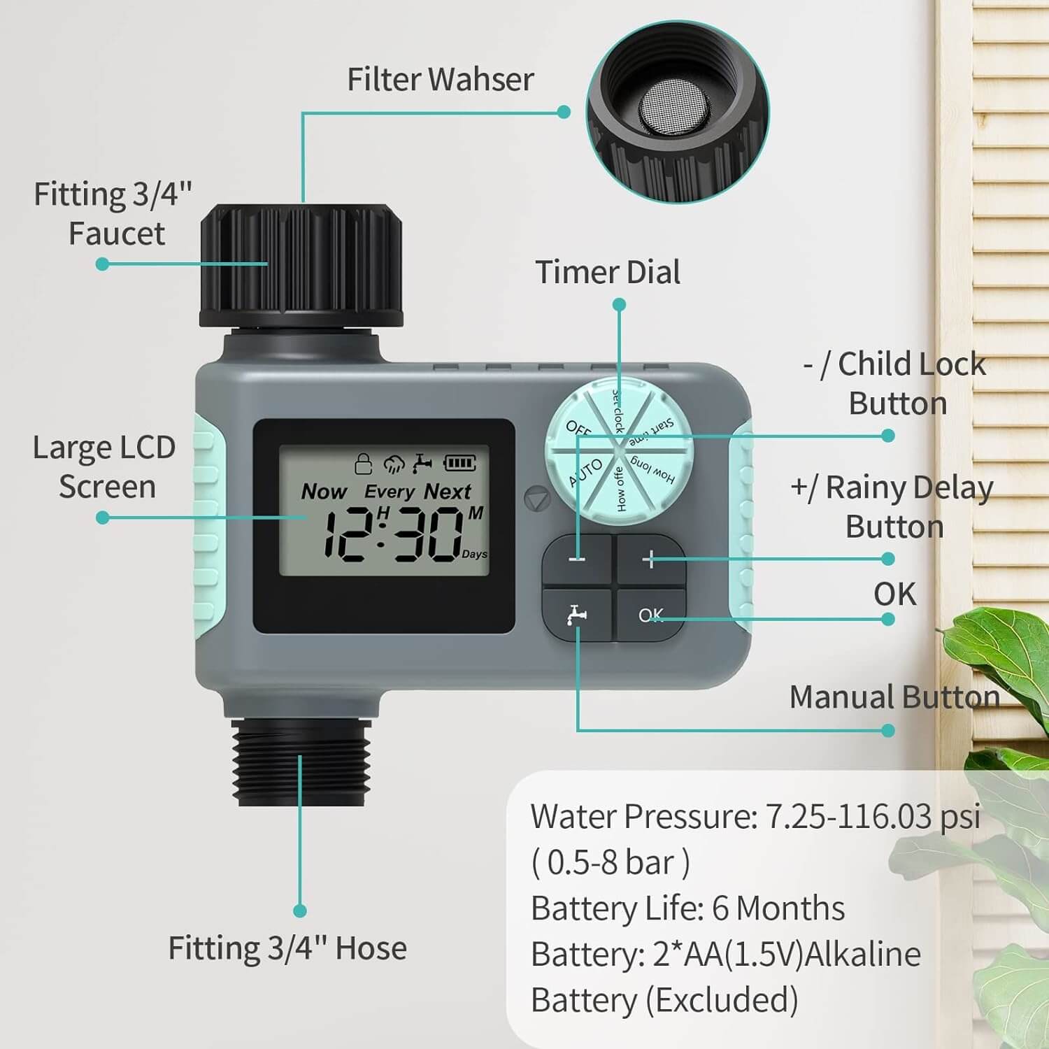 Con el Modo de Retraso por Lluvia, su programa se pausará durante 24, 48 o 72 horas y luego se reanudará automáticamente. Con el modo manual, puede regar cualquier césped o jardín a demanda, con tiempos personalizables de 1 minuto a 8 horas, sin interrumpir su programa.