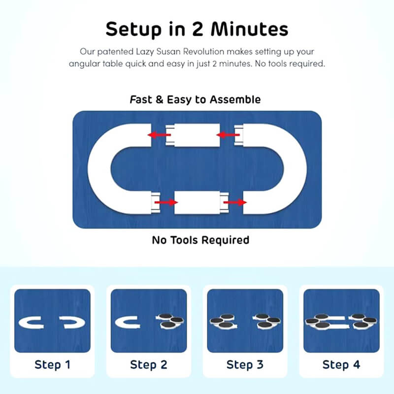 Simplemente coloca la bandeja y conecta las pistas; listo en 2 minutos. Además, es fácil de desmontar y guardar cuando no se usa.