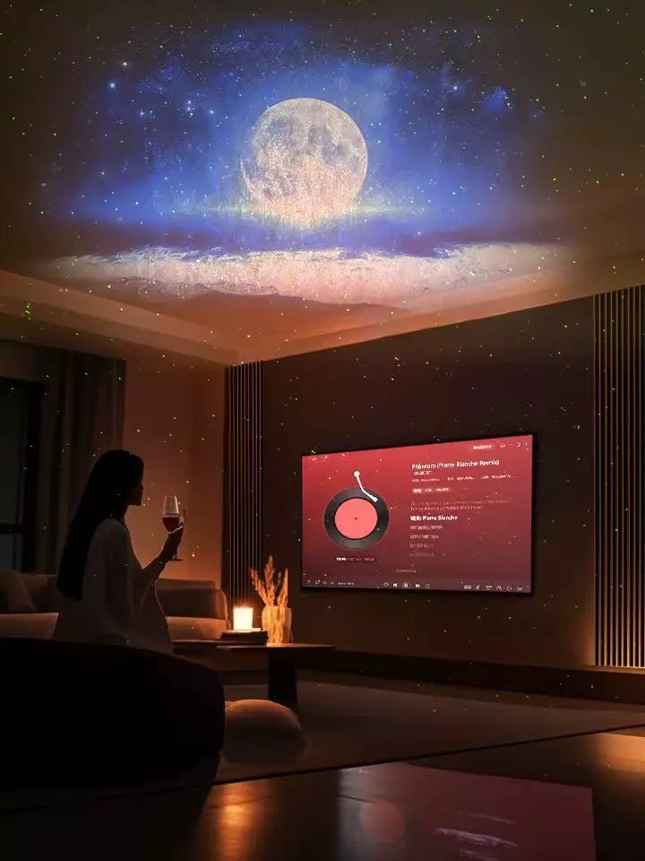 Connect your phone via Bluetooth or use the built-in ambient soundscapes, perfectly synchronized with each 3D scene. Rich, multi-directional audio moves with the visuals, creating a fully immersive experience for sleep, relaxation, study, or parties.