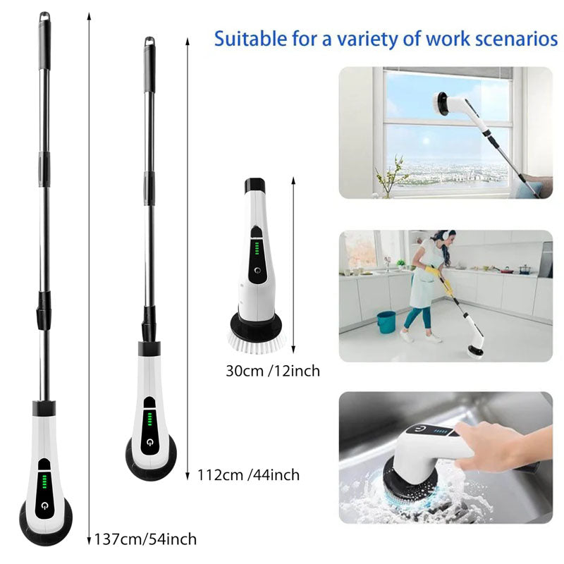 iToolMax Electric Cordless Scrubber Cleaner has three adjustable sizes, dual speeds and 7 replacement brush heads, say goodbye to bending and kneeling when cleaning, which can easily remove stubborn stain in every corner and substantially reduce your working time from 1 hour to 15 minutes, save time, effort and money to clean your house.