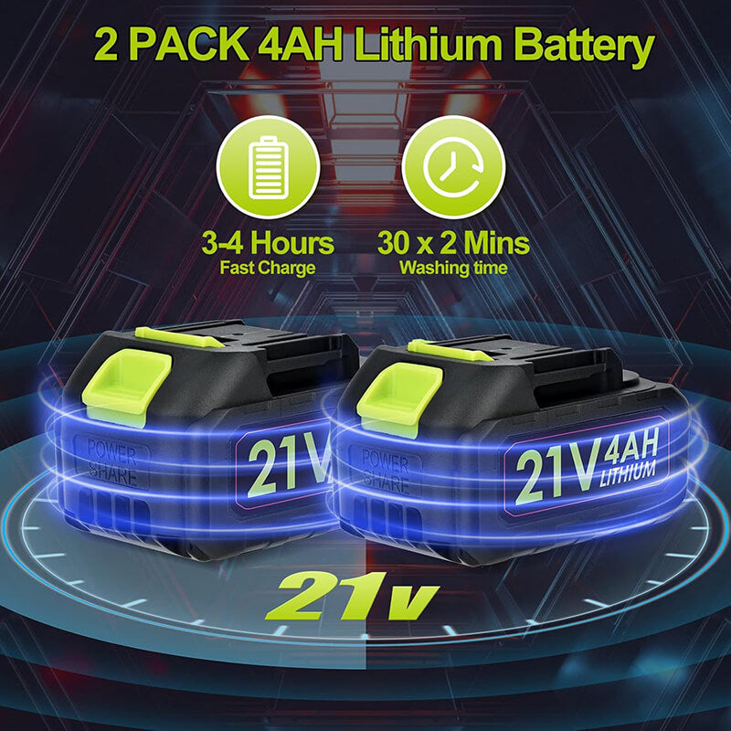 Incluye dos baterías recargables de 2000 mAh que ofrecen una limpieza prolongada e ininterrumpida. Puede lavar 3 autos con una sola carga y hasta 1 hora de lavado continuo. Olvídate del cable y disfruta de la libertad de lavar a alta presión sin cable dondequiera que estés.