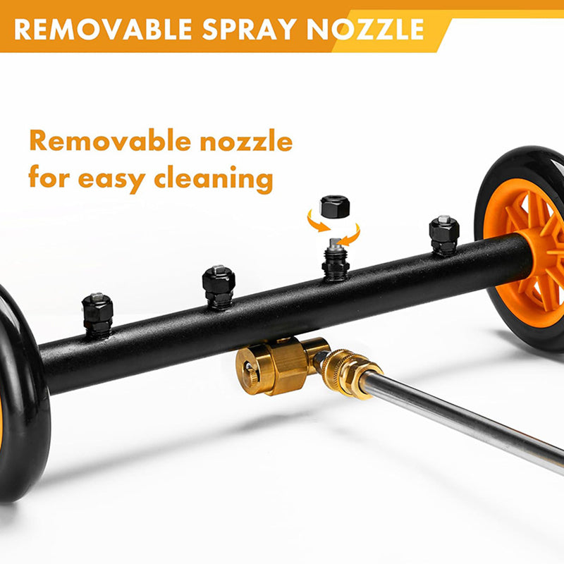 This versatile attachment works as both a sump cleaner and a pressure washer water broom, 5X higher efficiency, load 4000PSI Max. Delivering faster, more efficient car cleaning, avoid crawling under vehicles. Ideal for high-pressure cleaning for cars, trucks, and driveways and yard floor. Used for home or professional use!