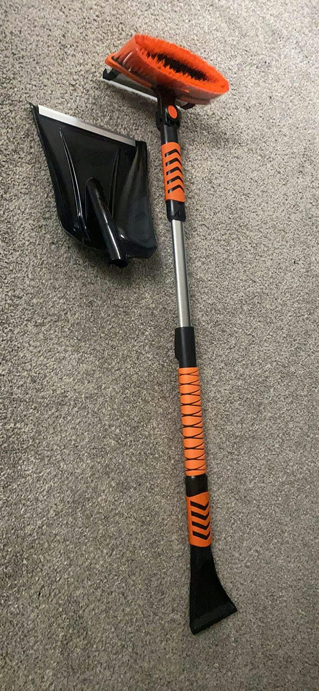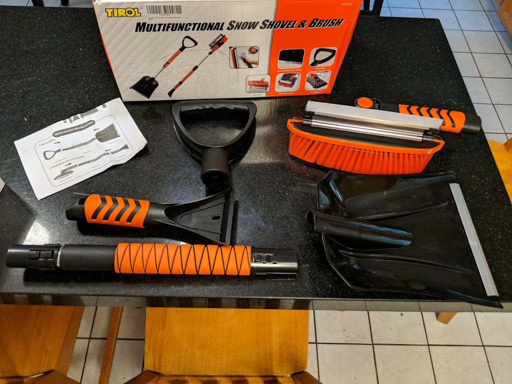 iToolMax 4-in-1 tool set includes an ice scraper, snow brush, snow shovel, and a telescoping snow broom, offering everything you need to clear your windshield and car in the harshest winter conditions.
