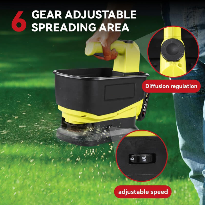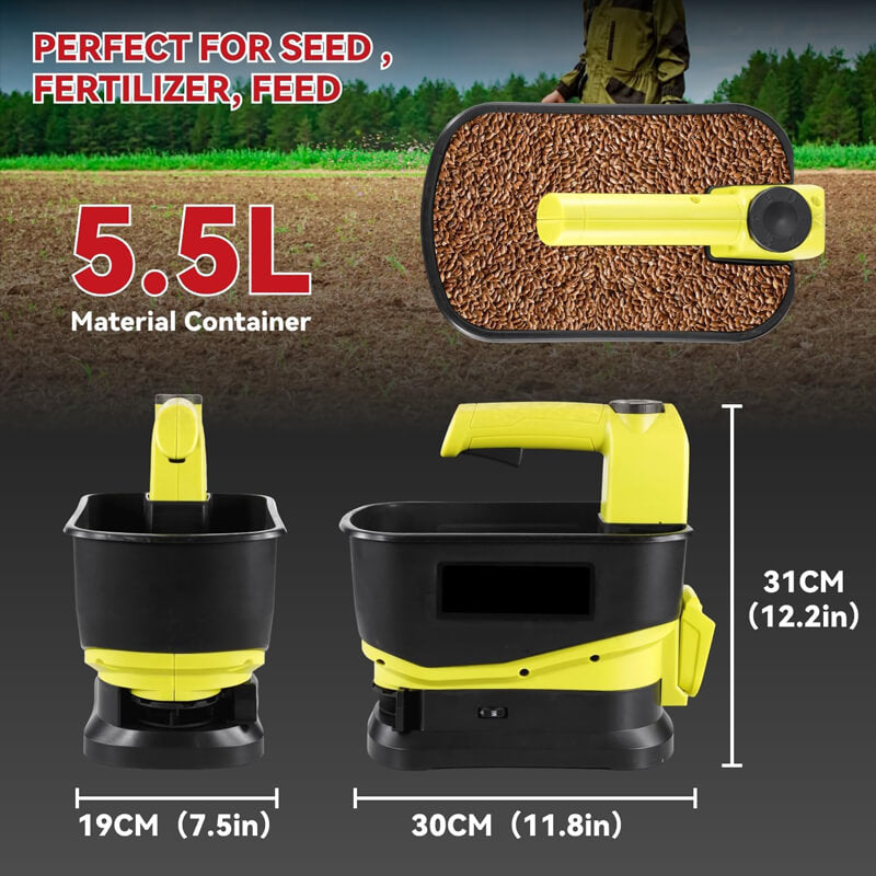 The 5.5L capacity much larger than others, lets you cover more ground with fewer refills, used with 1700rpm pure copper powerful motor, efficiency greatly up 10X. Making seeding, fertilizing, and spreading effortless. Spend less time stopping and getting the job done more efficiently!