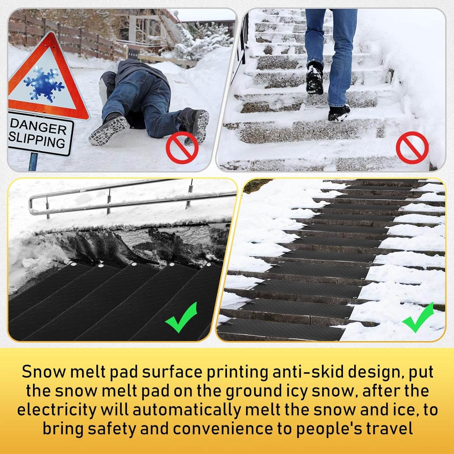 Simply lay the mats on your driveway, walkway, or stairs, plug them into a standard outlet, and enjoy instant snow and ice melting. Their lightweight and flexible design make setup and storage hassle-free.