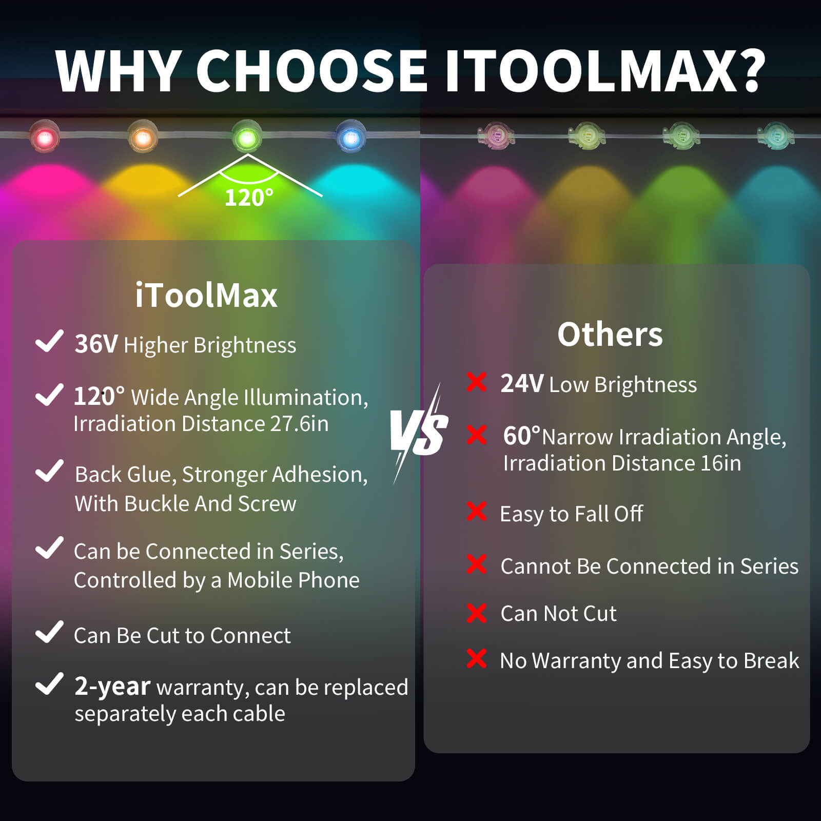- 📱 One APP control multiple sets of lights