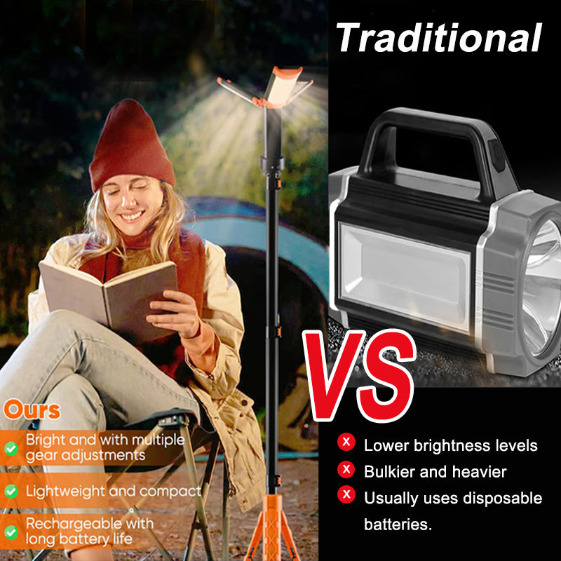 It's time to replace your bulky and dim old flashlight. This telescopic camping light with stand is your perfect outdoor ultimate companion. Featuring adjustable height, 360° bright LED lighting, and a sturdy, weather-resistant design, it’s ideal for camping, fishing, hiking, backyard gatherings or work lighting. And it is light and portable, rechargeable and adjust brightness.